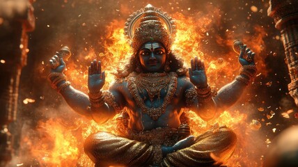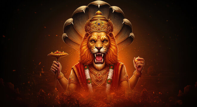 an ancient god vishnu lion avtar cinematic photo narsimha god image