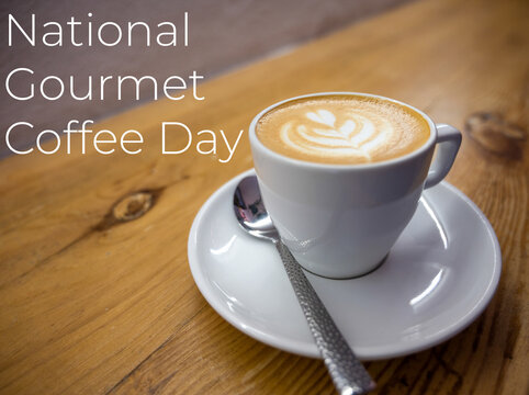 Coffee Time Concept with Cup on a table with message. National gourmet coffee day