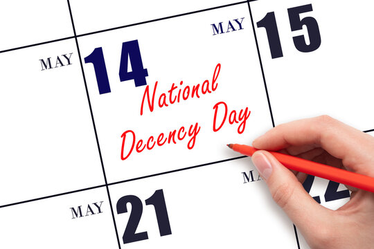 May 14. Hand writing text National Decency Day on calendar date. Save the date.