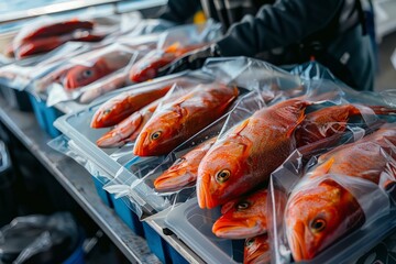 salmon fish meat on the frozen shelf use for the National Salmon Day
