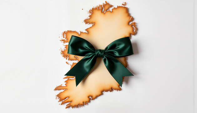 Ireland map with green ribbon tied as gift concept for St. Patrick's Day