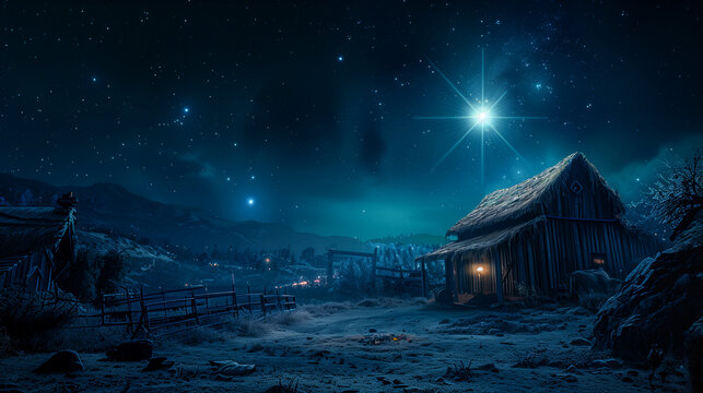 Bright Star of Bethlehem Nativity in Dark Blue Starry Sky with High-Resolution Illustrative Vector Design