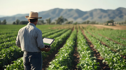 Vibrant green plants thrive in fertile soil with futuristic digital data overlay, symbolizing agricultural innovation and growth