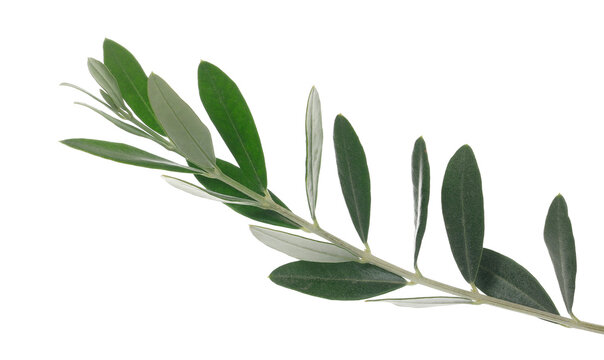 Olive tree, twigs with fresh green leaves isolated on white, clipping