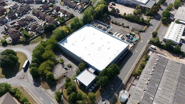 Aerial drone view of state of the art data center, information technology and IT services, Nottingham England UK