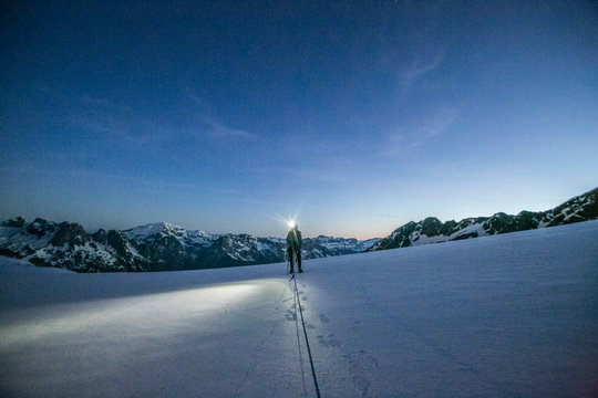 A boater uses a push pole to navigate the mangrove flats of Florida Bay within Everglades National Park, Florida.