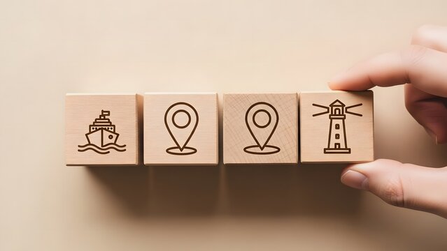 Wooden blocks with navigation icons