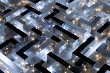 Intricate pathways of a digital maze showcase a futuristic design filled with glowing elements. This innovative environment symbolizes complexity in navigation and problem-solving strategies