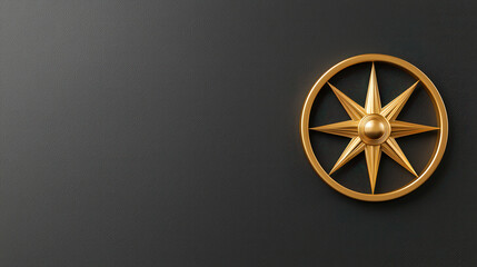 Minimalist background with golden compass on black leather surface, symbolizing direction and adventure. Perfect for travel themes and navigation concepts