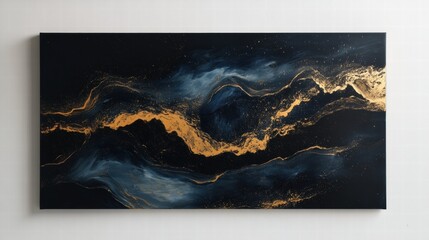 Bold colors of navy blue and bright yellow blend together in an artistic swirl on canvas. textured layers highlight the contrast and depth, showcasing creativity in color application