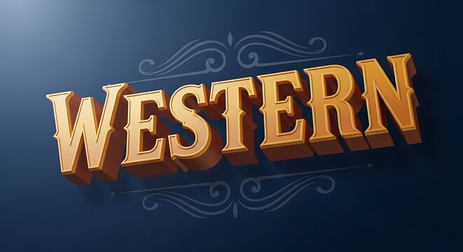 Western Style Typographic Design with Decorative Flourishes on a Dark Blue Background