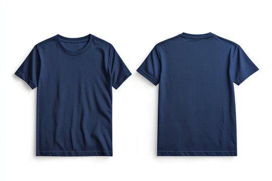A clean, minimalist design of a navy blue t-shirt mockup with front and back views, displayed on a white background, offering ample space for creative designs.