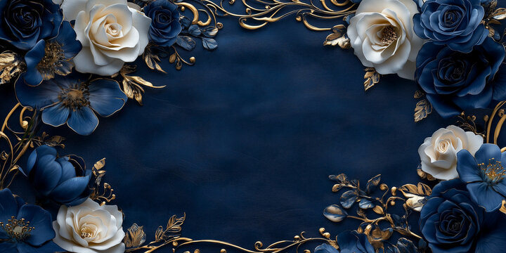 Golden Floral Accents and Glitter on a Deep Navy Blue Background