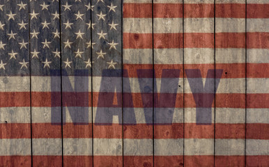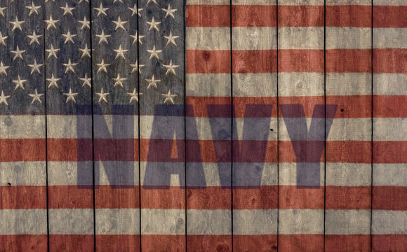 The concept is the us Navy. Front view of the battleship against the American flag. American fleet. Weapons of the American army. Participation of military vessels in conflicts at sea.