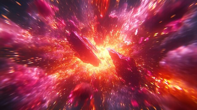 Abstract cosmic explosion bursts with vibrant energy and nebulous clouds