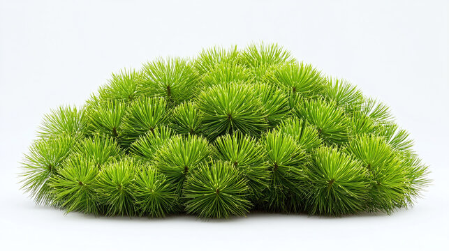 Pine needle cluster with natural twigs and soft highlights, angled diagonally on white background, isolated to transparent background