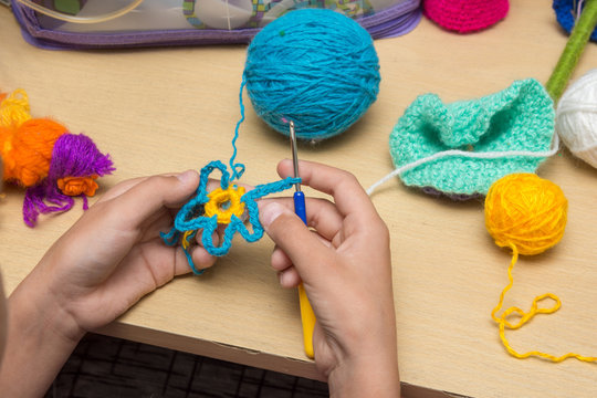 Learning the Art of Knitting: Student Practicing in Crafts Class