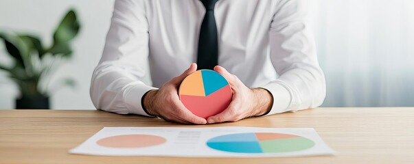 Financial negotiator using pie charts to convince clients, negotiation influence, data-driven decision