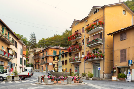 NEMI, ROMA, ITALY-SEPTEMBER 10, 2016. Fountain on square in center of Nemi.