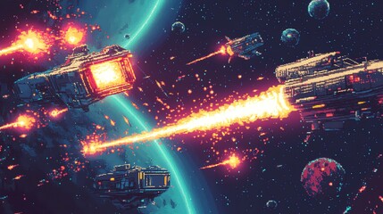 A stunning pixel art city skyline at sunset, showcasing retro video game aesthetics with vibrant colors and intricate details.
