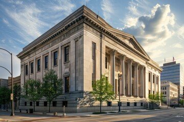 Aerial View of Neoclassical Building Amidst Indianapolis Skyscrapers