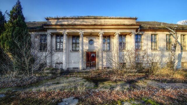 neoclassical building with marble columns in Washington, D.C., under a blue sky. Wide-angle shot.