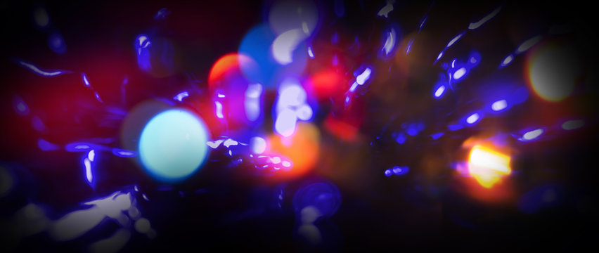 Colorful bokeh string lights blurred night street festival lights urban glow