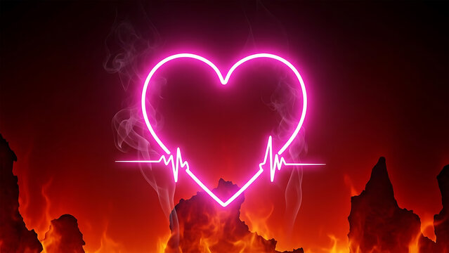 pink heart shape neon light on gradient background. Abstract and decoration concept. Happy Valentines day element. Valentine heart with neon light effect