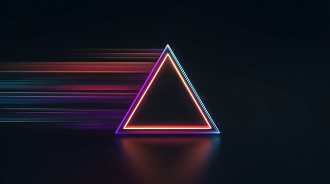 Glowing neon triangle icon with vibrant colors and motion blur effect on dark background with glowing icon and graphic design and futuristic