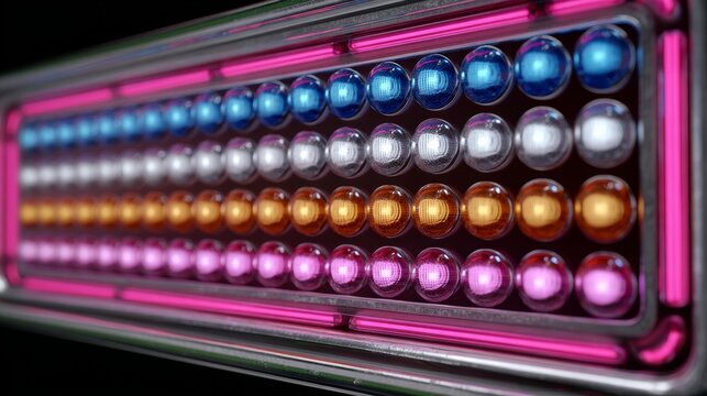 Colorful LED light display featuring vibrant rows of illuminated bulbs in various hues, creating a dynamic visual effect, ideal for modern design and artistic projects