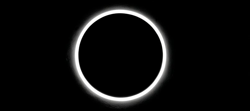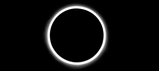 White neon circle on black background