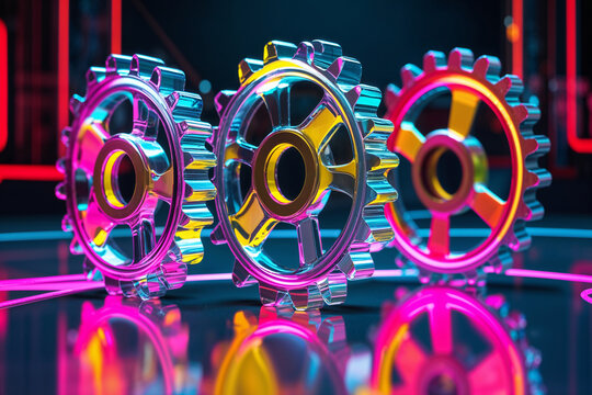 Neon circles and flashing lights digital abstract