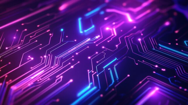 Futuristic blue and purple technology background wit abstract circuit board paterns, ideal for high-techthemes, innovation concept, and modern digital desigs