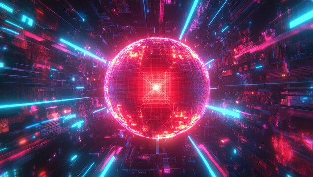 Neon sphere in a futuristic tunnel