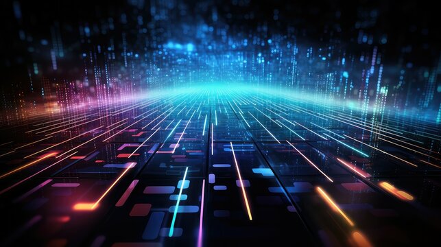 Futuristic digital grid with neon light patterns