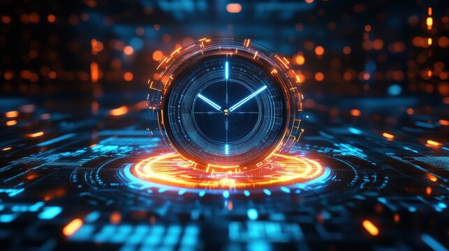 Digital 24/7 clock illustration with glowing blue accents on a dark background.