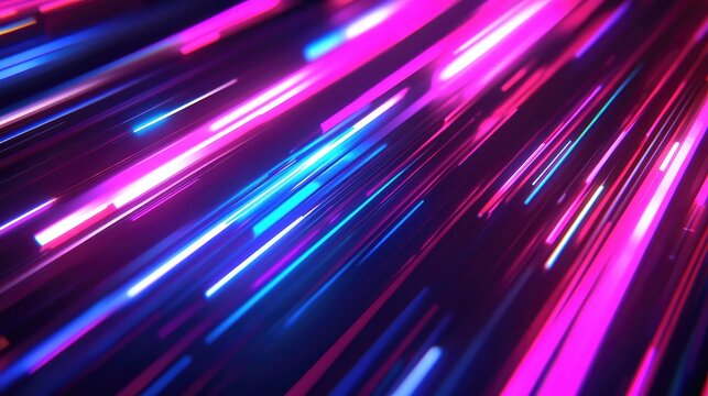 Vibrant photo of abstract background with neon light trails moving rapidly in space, featuring blue and purple colors, with a speed motion blur effect. an abstract, futuristic.