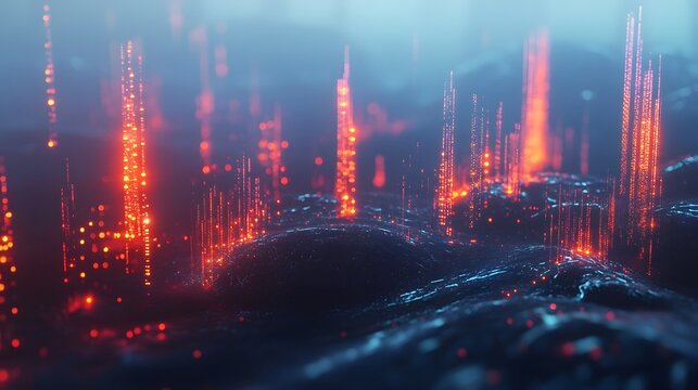 Glowing Orange Data Streams in a Futuristic Digital Landscape.