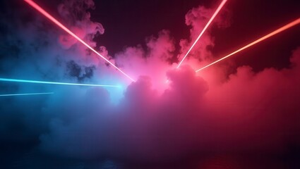 Vibrant laser beams cut through billowing smoke clouds, creating a mesmerizing and futuristic spectacle.