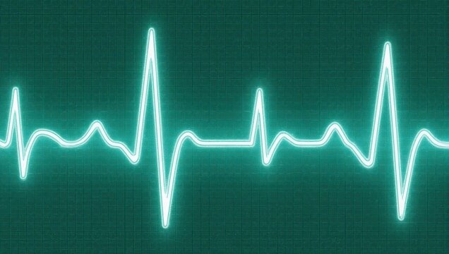 Electrocardiogram Heartbeat Line Neon Green Background.