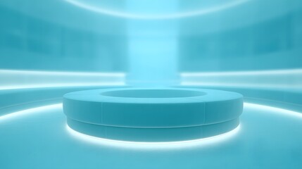 EV charging hub lounge blurred immersive circular seating pod with neon cyan glow