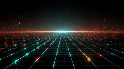 Vibrant cyberpunk tunnel with glowing orb and neon grids