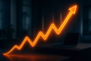 Bright orange neon graph line showing upward trend and growth against a dark blurred background