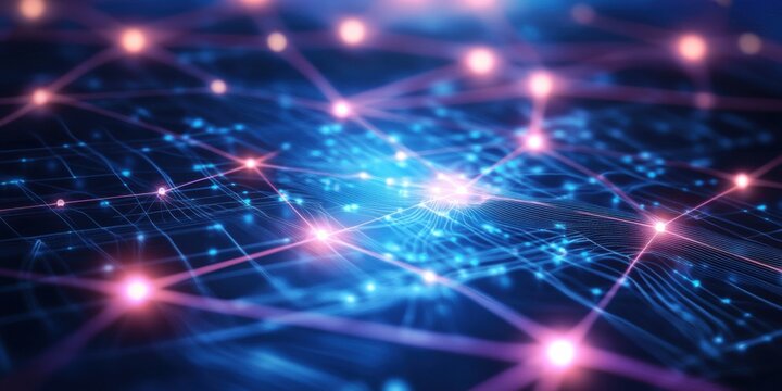 Futuristic neon network grid with glowing connections