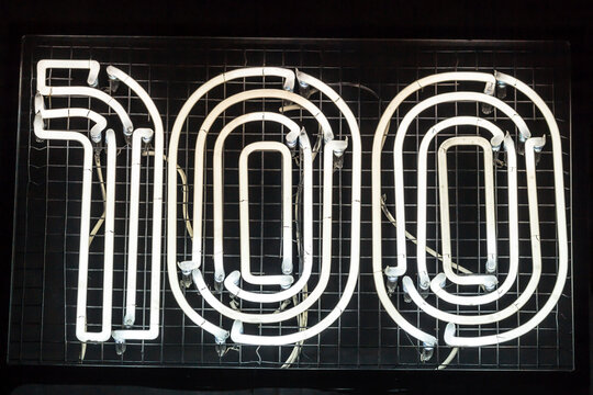 100, neon sign,horizontally
