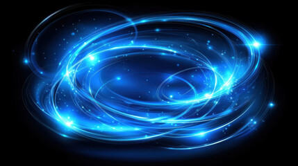 blue light circle with smooth glowing edges, twirl, particle halos creating a clean frame. Blue glowing circle. Light frame on black background