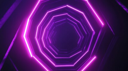 Neon tunnel of glowing pink polygons creates a futuristic and abstract background, great for digital art or technology concepts.