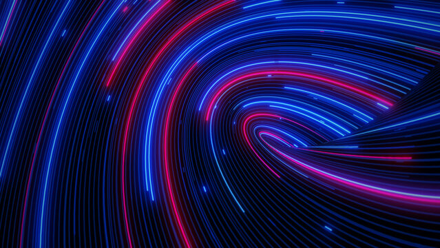 Multicolor lines of neon light twist the abstract background 3d rendering