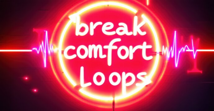 Bright neon sign displays text break comfort loops. Red illumination dominates image, creating vibrant visual impact.