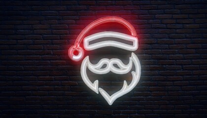 Glowing neon santa hat outline emitting magenta and cyan duotone holiday glow